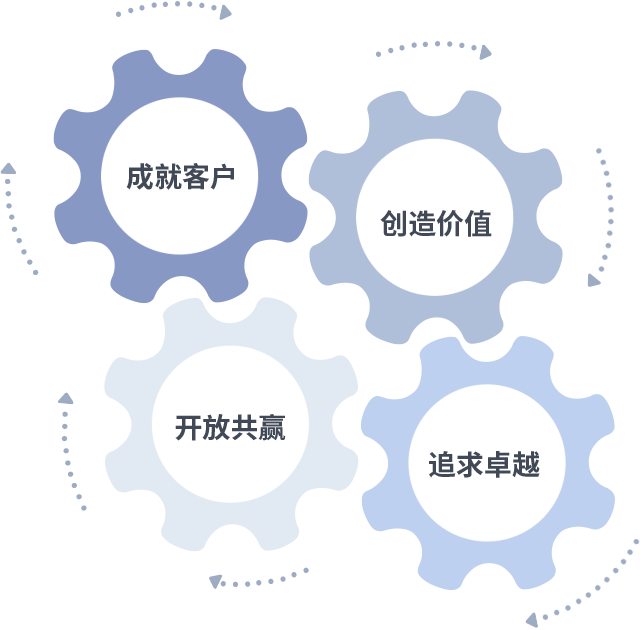 成就客户是一切决策的出发点,创造价值是衡量所有工作的标准,追求卓越是Z6尊龙中国官网入口z6mg做事做人的态度,开放共赢是Z6尊龙中国官网入口z6mg的格局也是最终的结果。价值观的齿轮环环相扣,推动着组织里的每个人不断向前。
